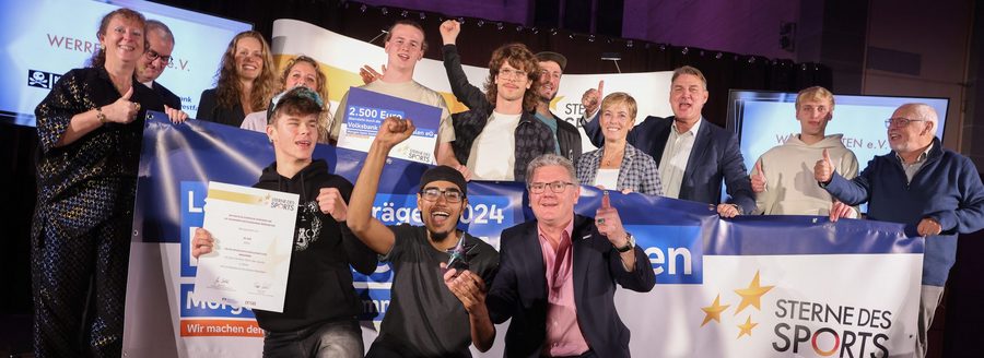 Die sechs Landessieger des Breitensport-Wettbewerbs „Sterne des Sports“ in Nordrhein-Westfalen stehen fest, die größte Freude herrscht in Ostwestfalen: Erster Sieger und Träger des „Großen Sterns des Sports in Silber“ ist der Sportverein Werrepiraten e.V. aus Hiddenhausen. Die beiden Preise „Kleiner Stern des Sports in Silber“ erhielten der Sportverein Move and Meet e.V. aus Münster (2. Platz) sowie TABALiNGO Sport & Kultur integrativ e.V. aus Stolberg (3. Platz). Förderpreisträger sind die drei Vereine Karate Club Sennestadt 1970, Kampfsportcenter Grevenbroich und FSV Gerlingen. Insgesamt vergab die Fachjury aus Sportler*innen, Journalist*innen und Vertreter*innen des Landessportbundes und des Landesministeriums Preisgelder in Höhe von 6.500 Euro.
