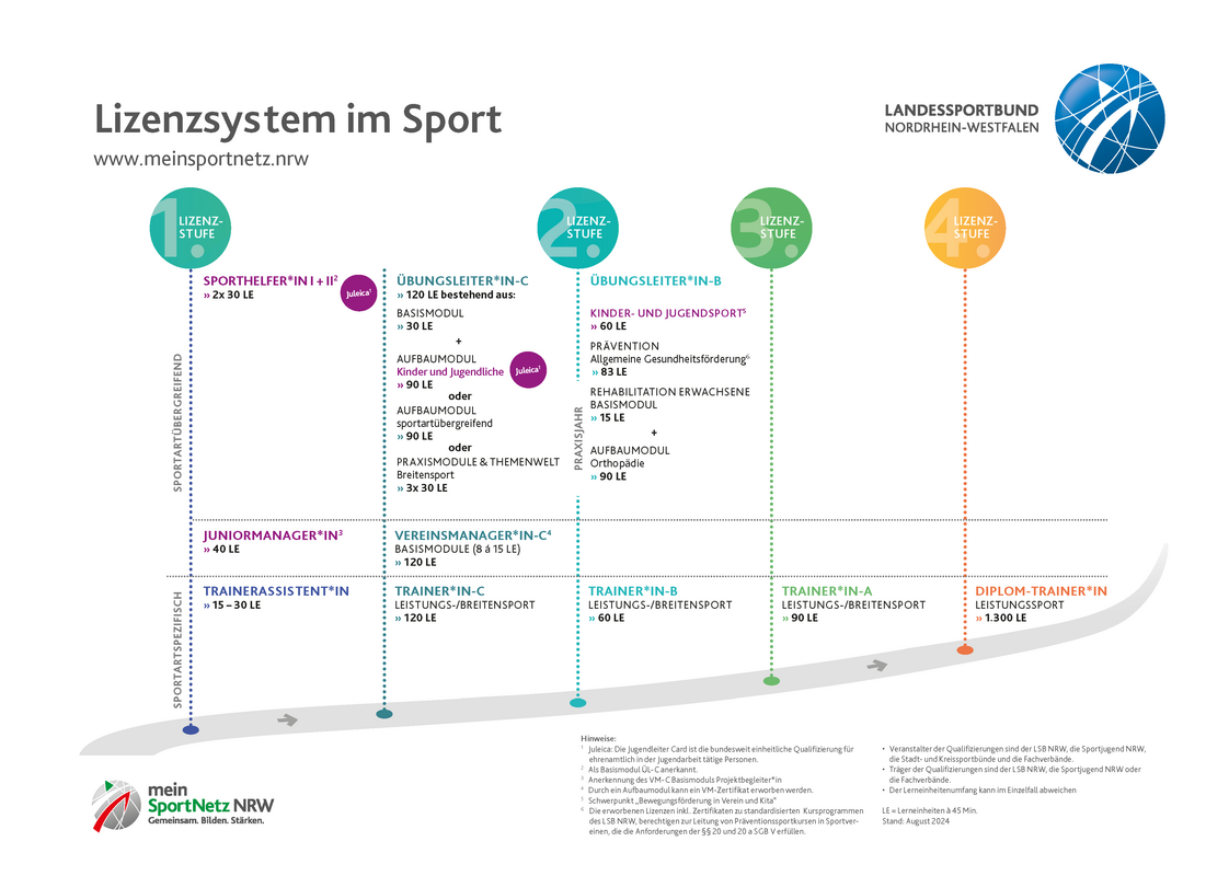 Welche möglichen Qualifizierungswege es im Lizenzsystem gibt, zeigen wir Ihnen hier: https://www.meinsportnetz.nrw/lizenzsystem